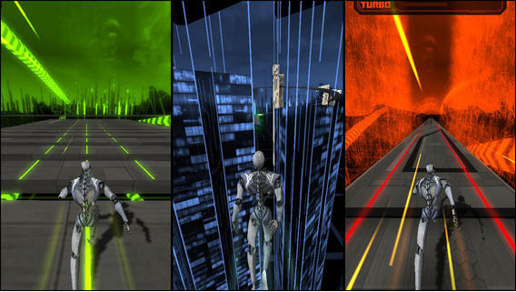 游戏充满浓浓的科技味道,玩家需要扮演一名身手矫健的未来机器人,使用流畅的动作来穿越各种障碍,画面构成要素虽然简单,但是整合起来之后再配合快节奏的游戏,着实要酷炫不少。除了跳跃、左右移动和下滑,游戏还允许机器人跳出跑道进行躲避。在奔跑的过程中你还要时刻记得收集能量包给机器人补充能量,同时玩家还有机会触发 Free Run、Drag Race 和 Speed Run 三种状态,极大地丰富了游戏内容。此外玩家们还可以参与两种模式的挑战,而内置的 41 道关卡也让游戏更有奔头,喜欢的朋友千万不要错过。