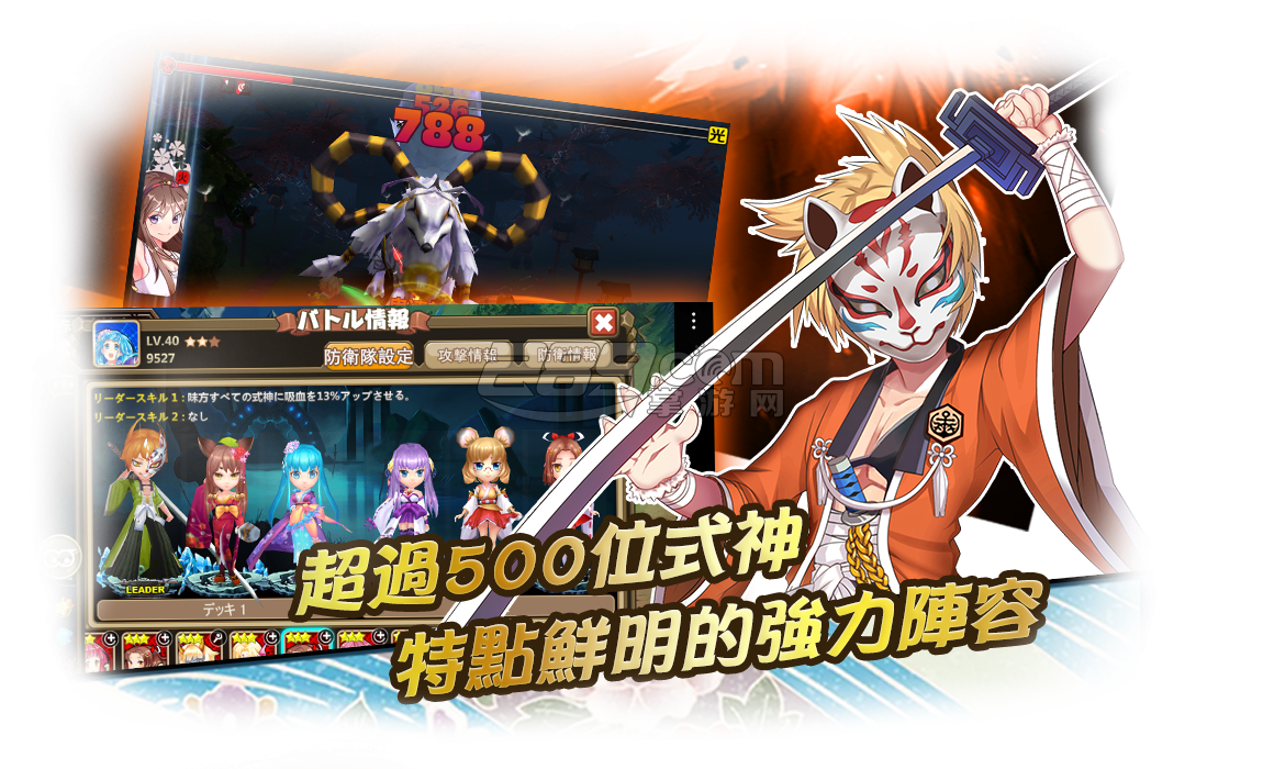 《式神召唤》是一款强调「属性相克」、「式神属性」以及「技能搭配」的配合来战斗的策略型RPG。「式神」即为游戏中的妖怪和神明,随着与玩家的相遇及剧情发展,皆有机会成为玩家的伙伴成为式神。玩家将在游戏中扮演着穿越时空来到了遗忘者之乡的救世主,拯救面临危机的异世界!除了丰富的战斗元素外,游戏中还拥有高达500只以上的式神,供玩家召唤使用。式神战斗能力在游戏中被分为多个星级,星级越高的式神其战斗天赋就越强,成长越快。在游戏角色上,每一式神皆有独特技能大招。不断挖掘角色之间技能的搭配,让玩家自由组合出特点鲜明的强力阵容来因对千变万化的敌人,成为克敌致胜的关键!