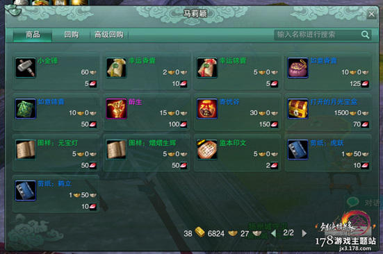 建议大家小银锤买20个,小金锤买20个,幸运锦囊买20个,幸运香囊买20个,醉生买20个,寄忧谷买20个。如意香囊和如意锦囊应该是今年新增的,但是多增加了一种BUFF,就要多考虑一种情况,我在这里就用最保守的方法来给大家来介绍,所以就不用如意香囊锦囊了。虽然这些东西也可以在马莉颖那边用金钱加梅良玉签购买,但是不推荐大家这样买,梅良玉签最好留着换东西,砸罐子的材料多花点金在马莉傲这边购买。