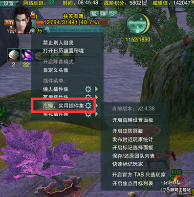 首先我们在登录游戏之前在角色选择界面找到海鳗插件,然后把砸罐子助手这个插件加载上,等会要用到它。
