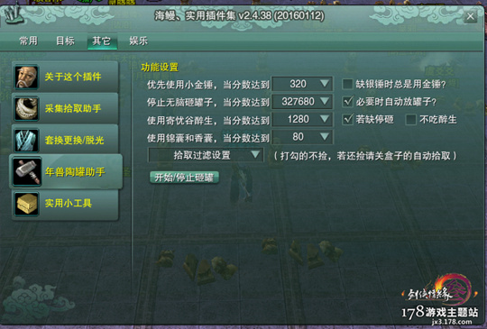 然后材料都买好了,插件也设置好了,就可以点海鳗砸罐子助手的开始砸罐子了。如果不想自己动手到这里就可以吃着水果,盯着屏幕看它自己砸了。